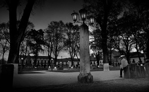 #1017-J-025 Mexico December 1970 Early Morning Plaza Scene