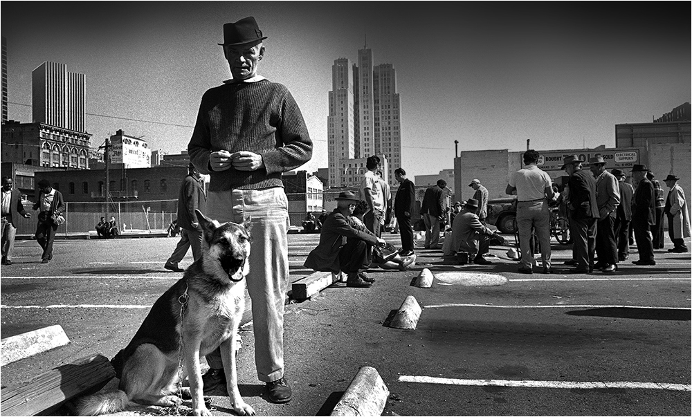 #744-C-1 Skid Row resident and his dog. 3-22-1970